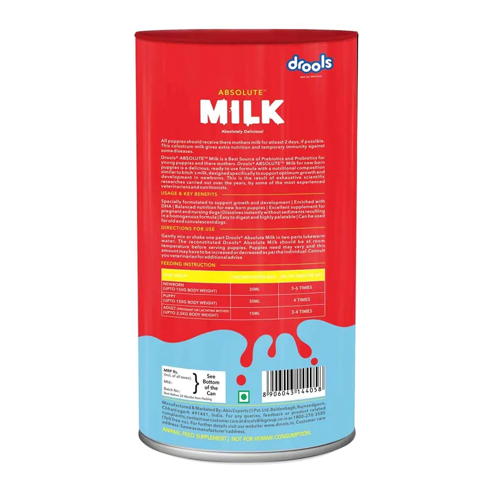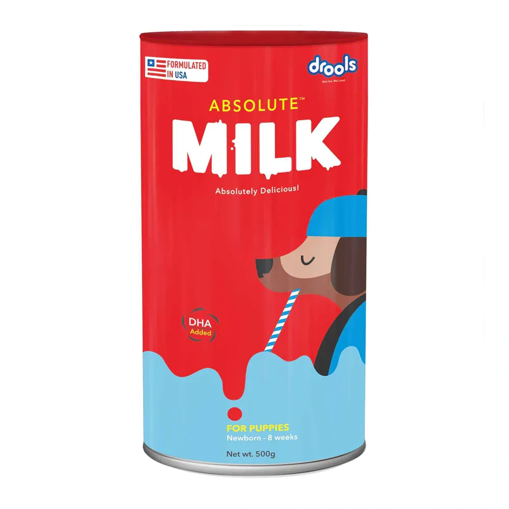 - Drools Absolute Milk for Newborn Puppies contains a blend of high-quality, easily digestible ingredients, including: