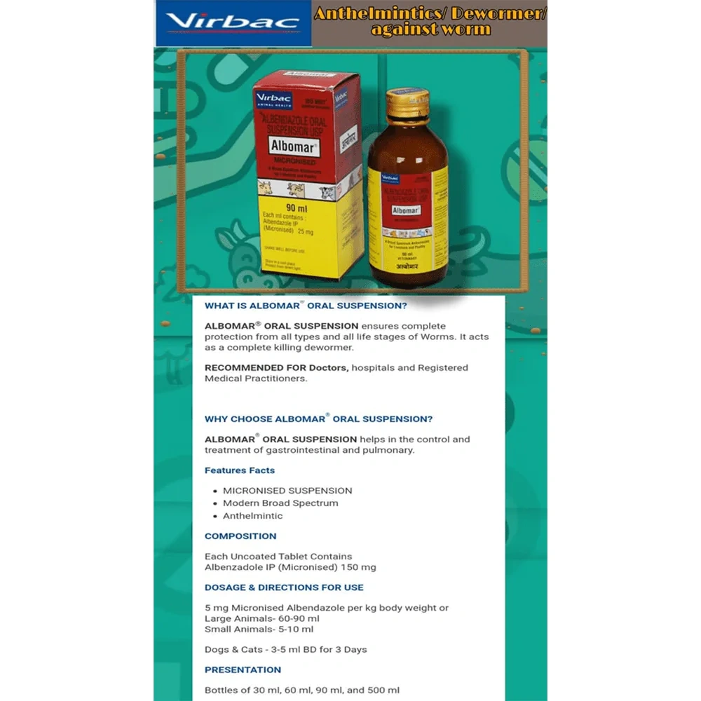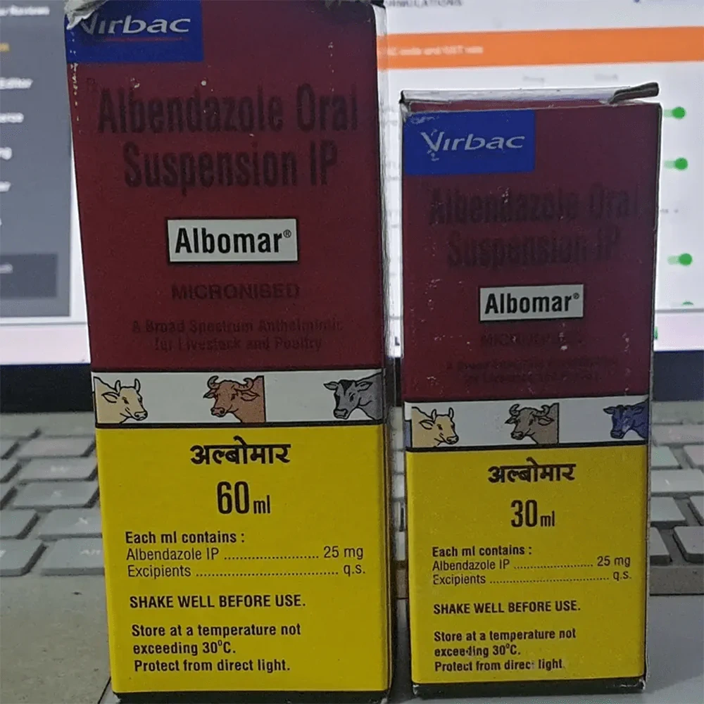 ALBOMAR® Albendazole ORAL SUSPENSION is a broad spectrum anthelmintic for livestock and poultry. RECOMMENDED FOR Registered Medical Practitioners. ALBOMAR® ORAL SUSPENSION