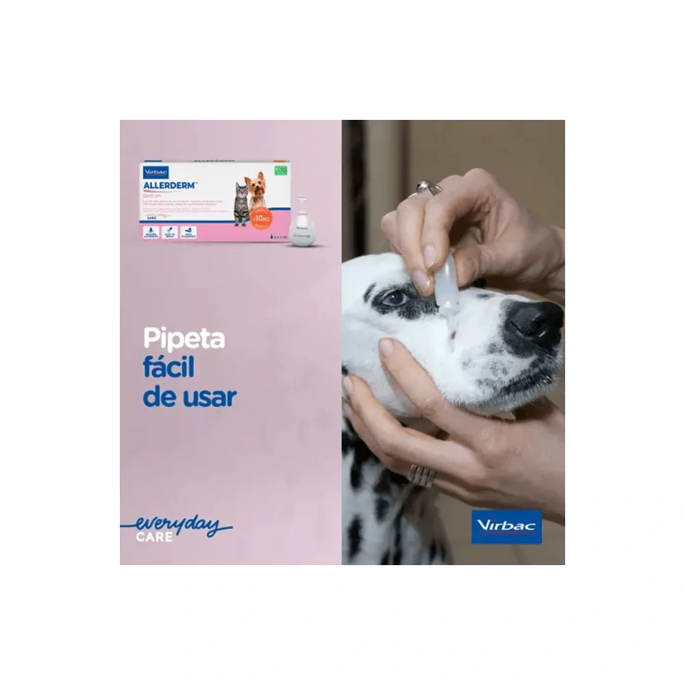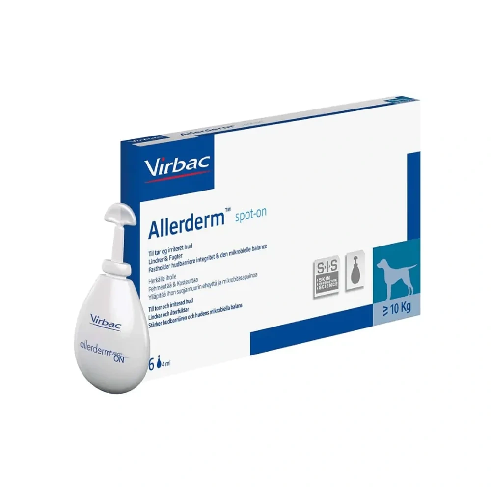 1. To repair and restore the epidermal barrier integrity in cases of atopy, keratinization challenges, or post-treatment of infectious dermatitis. 2. To maintain and protect a well-moisturized epidermal barrier in healthy pets ALLERDERM® Spot-On is a skin-moisturizing solution designed to repair, restore, and protect the epidermal barrier conveniently. It provides essential lipids to repair and restore the epidermal barrier while Virbac’s patented S-I-S technology helps maintain the microbial balance on the skin.Composition