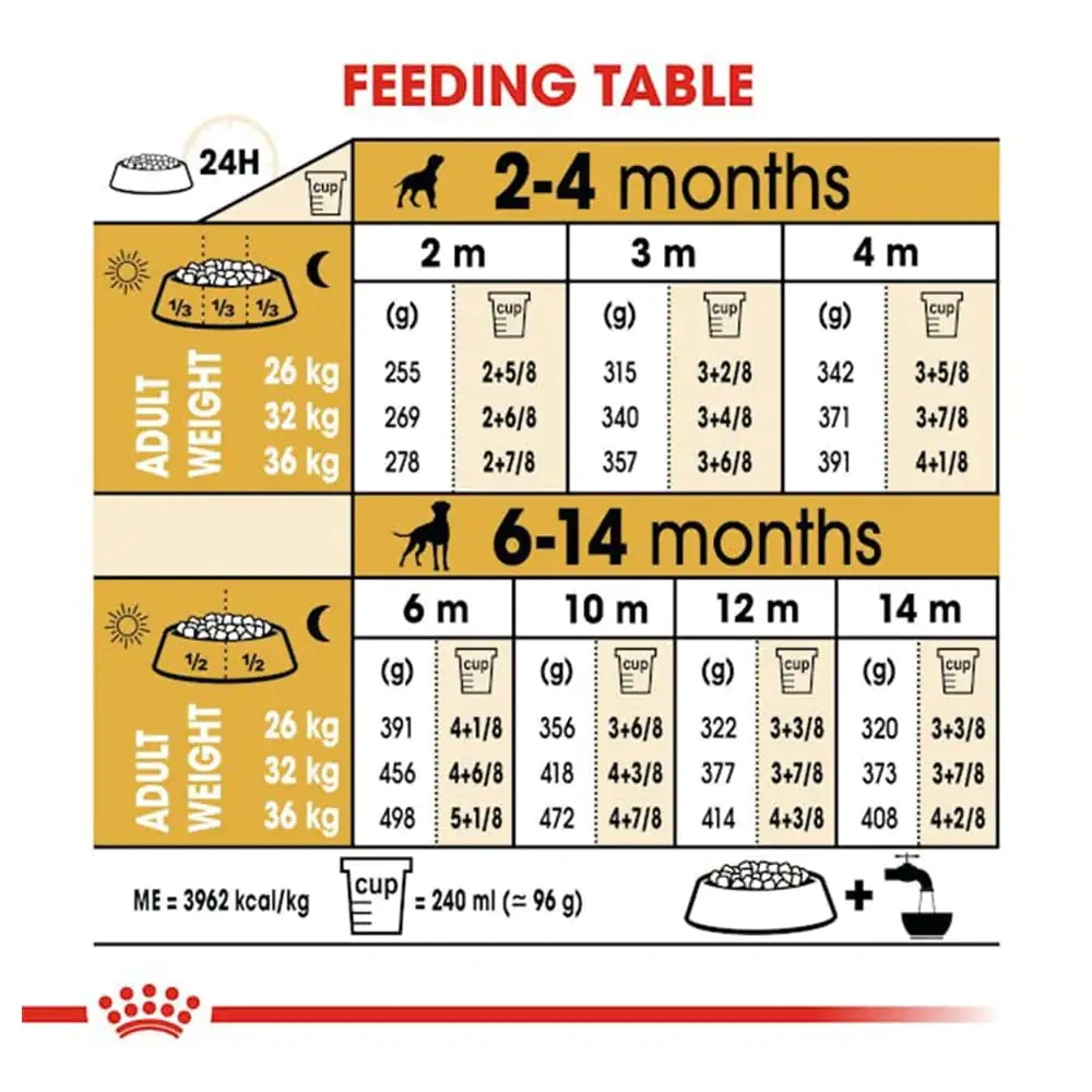This product contains high-quality proteins, antioxidants (including vitamin E), L-carnitine, prebiotics (FOS), and tailored kibble. It is designed to support the growth, immune system, muscle development, and digestive health of Boxer puppies up to 15 months of age.Precautions