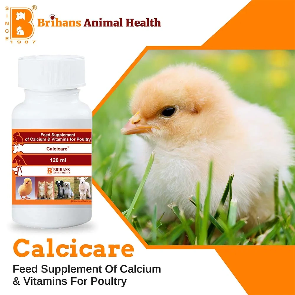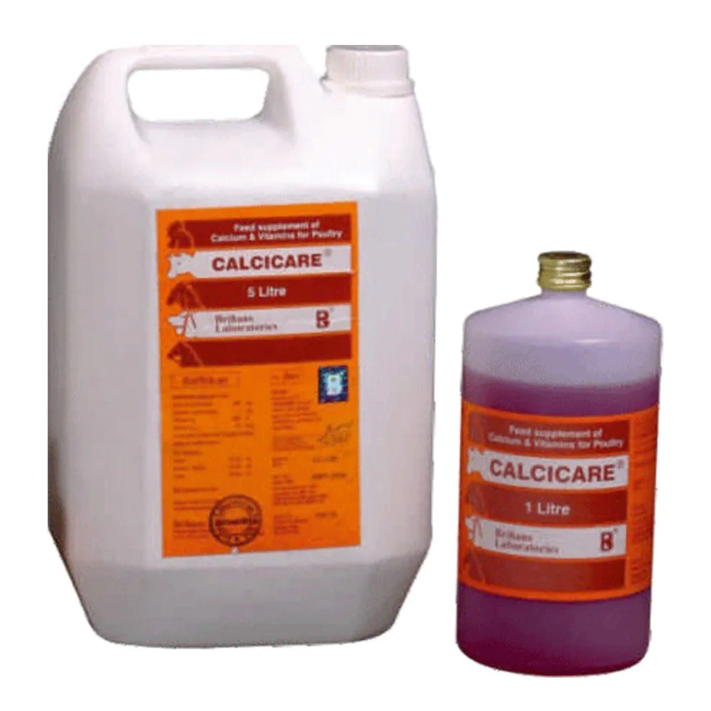 Brihans CALCICARE is a calcium and vitamin supplement designed to support poultry health. It provides a double calcium formulation with optimal concentrations to address issues such as small and thin-shelled eggs, production loss, cannibalism, and cage layer fatigue. In broilers, it aids in weight gain and promotes uniform growth.Key Ingredients