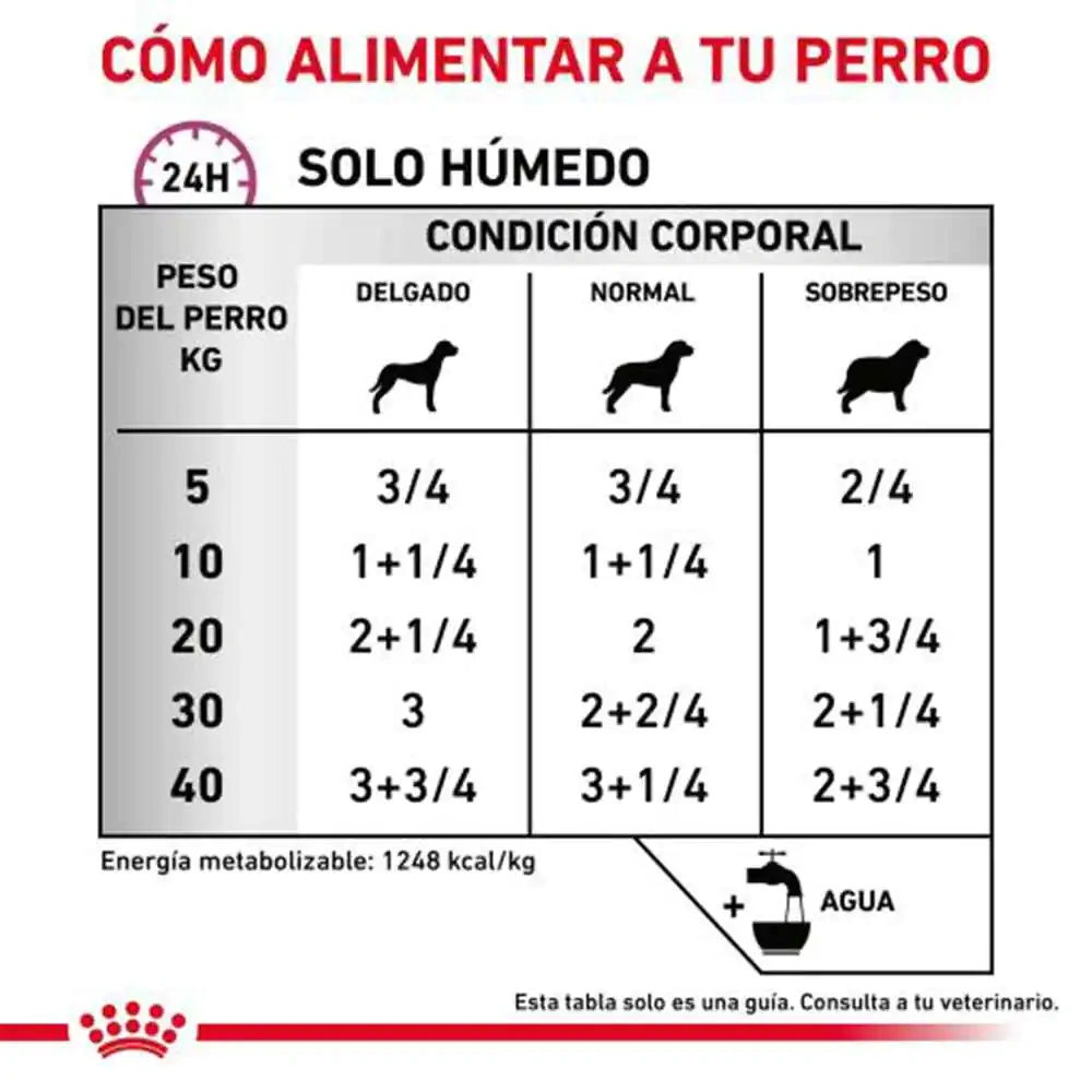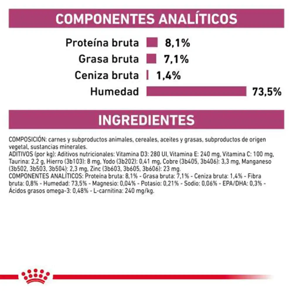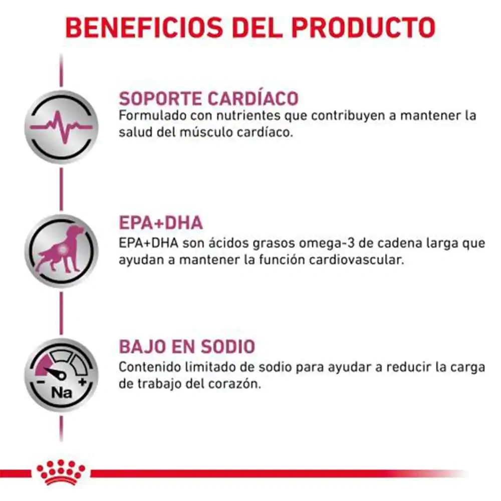 This wet food is composed of meat and animal derivatives, cereals, oils, fats, minerals, and vegetables. It is tailored for dogs with chronic cardiac issues, helping maintain vascular health and oxidative stress management while providing balanced nutrition to support cardiac muscle function.