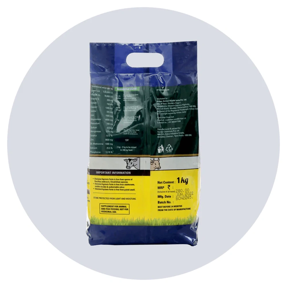 Chelated Agrimin Forte is free from adulterants, visible moulds and undesirable odour.