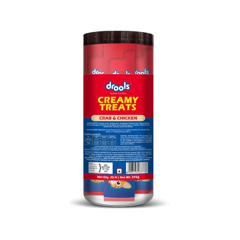 Drools Creamy Lickable Cat Treats “Crab and Chicken” is a delightful and nutritious treat that any cat is sure to love. With its irresistible flavor, high protein content, and added hydration benefits, this treat offers a perfect snack that supports your cat’s health and well-being. Whether you’re rewarding your cat, enhancing their meals, or simply treating them to something special, Drools Creamy Lickable Cat Treats are a great way to show your feline friend just how much you care. Plus, with their convenient and mess-free packaging, feeding time is always a breeze.