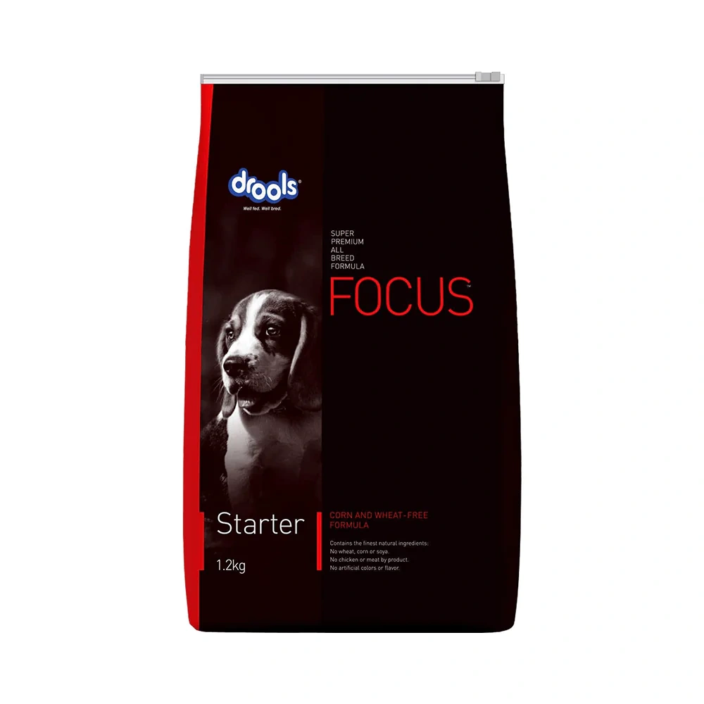 Drools Focus Starter Super Premium Dog Food is a corn, soya, and wheat-free, all-breed formula, specially designed for weaning puppies from 3 weeks to 3 months who require an increased amount of protein, energy, and essential nutrients and are on a gluten-free diet. As with all products of this range the FOCUS is on more meat but is also enriched with natural antioxidants, prebiotics, probiotics, and omega fatty acids for better gut health, digestion, and absorption which support the overall growth and development of puppies after weaning. Also, ideal for lactating dogs, as the essential nutrients help in both fetal development and milk production.