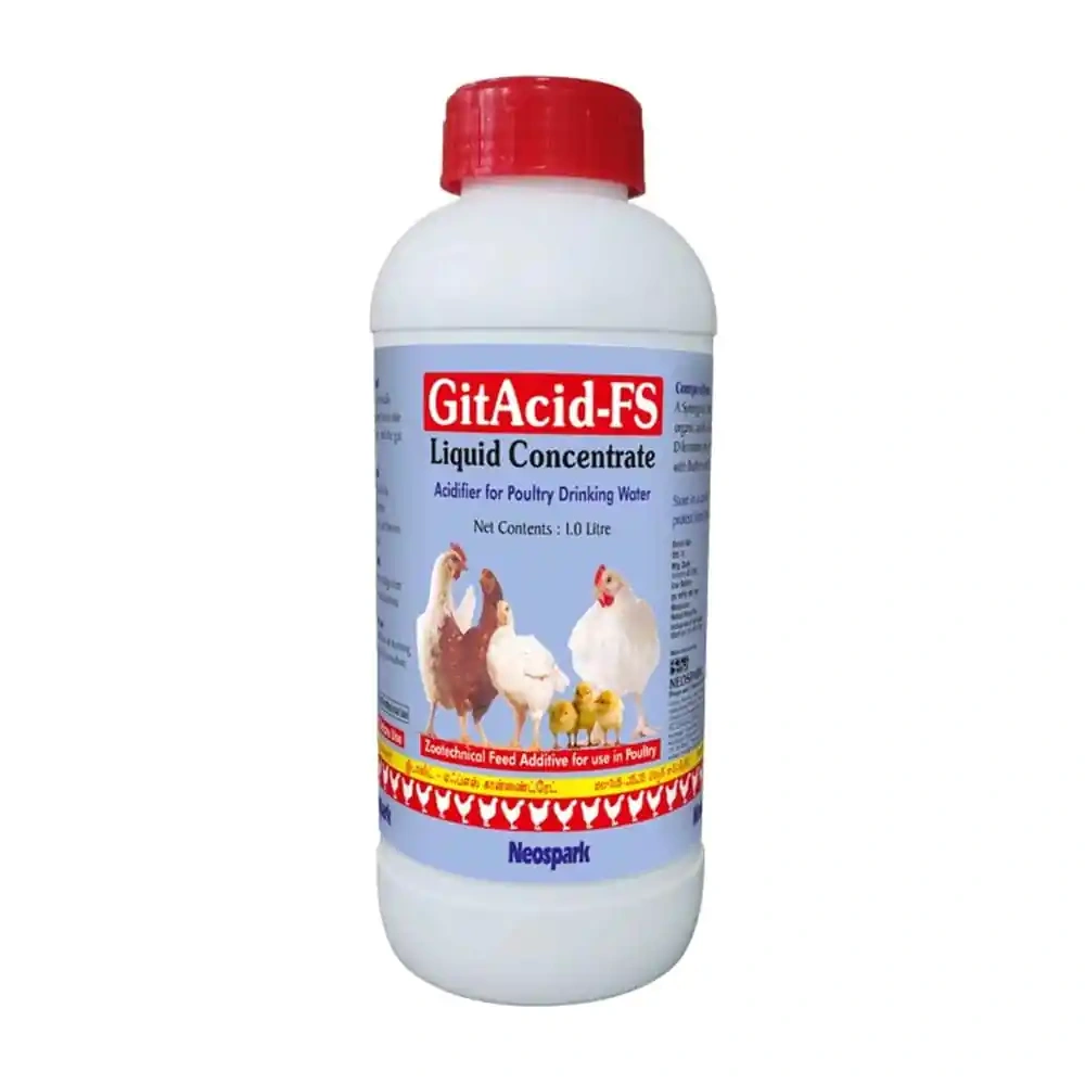 GitAcid-FS has the specific ability to penetrate bacteria through the cell wall and kill the bacilli by interfering with its metabolism. Lowers incidence of diarrhoea.