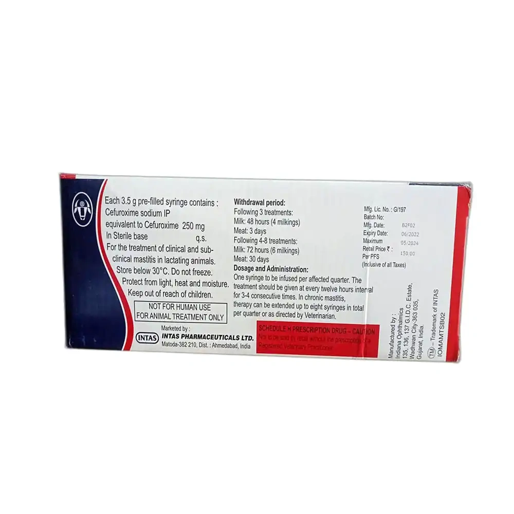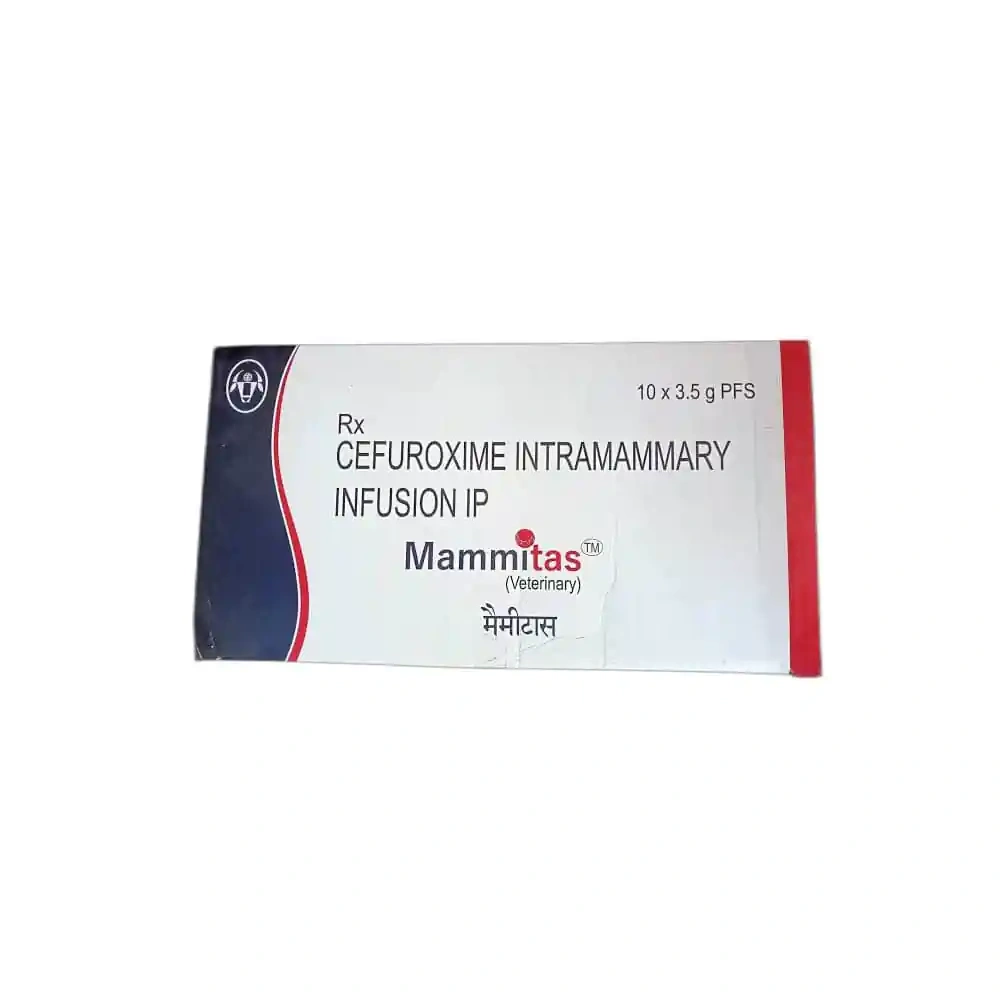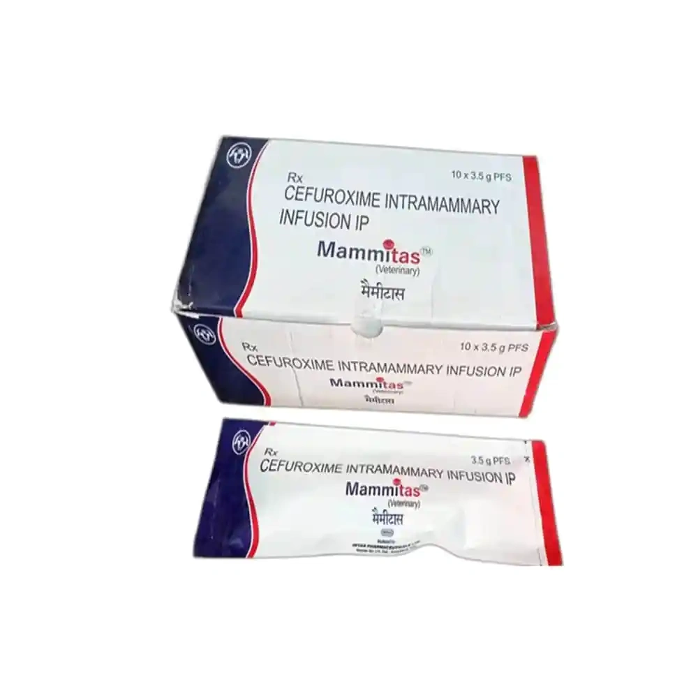 MAMMITAS INJ, a notable entry in the INJECTABLE MEDICINE category, is a versatile veterinary medication suitable for a wide range of animals including cows, horses, goats, pigs, buffalo, bulls, camels, sheep, hamsters, guinea pigs, and rabbits. This product, with a main content of Cefuroxime 250 mg, is manufactured by INTAS and comes in a 3.5 gm sealed pack. MAMMITAS INJ showcases a commitment to providing high-quality, effective veterinary care.