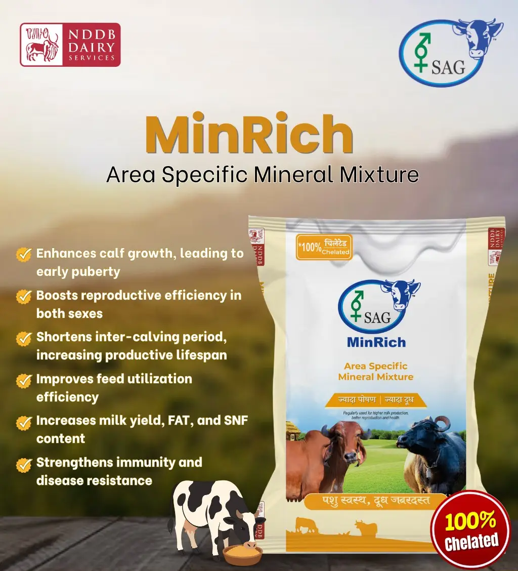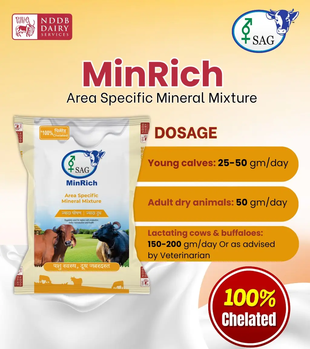 Compound cattle feed is palatable and good source of nutrients for growing, adult, dry, milk producing and pregnant animals. Through regular use of compound cattle feed in prescribed quantity along with basal diet, cost of milk production from dairy animals can be optimised and net profitability can be increased.