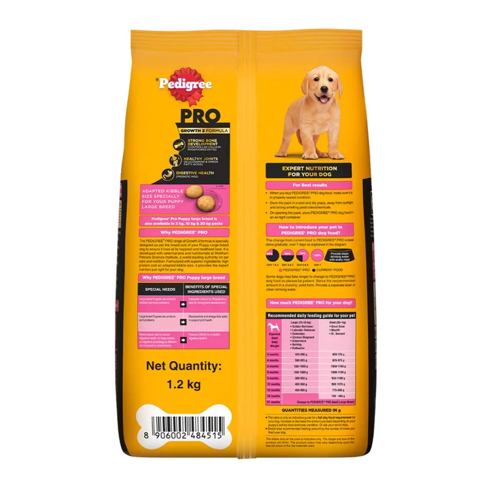 Suitable For: This Pedigree PRO dog food is suitable for large breed puppies (3-18 months).