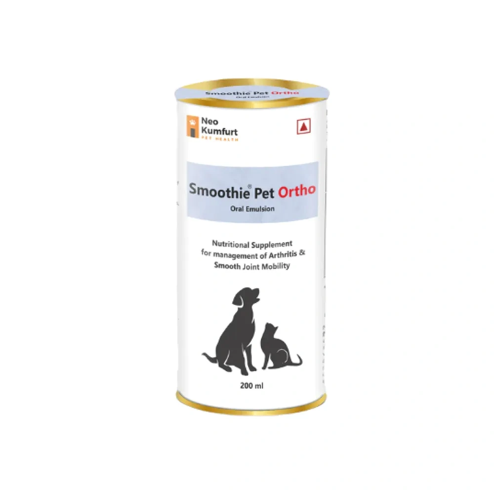 Class: Joint Support Uses of Neo Kumfurt Smoothie Pet Ortho for Pets: Supports joint health and mobility in dogs and cats. Helps reduce joint inflammation and discomfort. Aids in the maintenance of joint flexibility. Assists in recovery from joint injuries and surgery. Benefits: Promotes healthy cartilage and joint function. Enhances overall joint comfort and mobility. Reduces joint pain and inflammation. Supports the repair of damaged joint tissues. Key Features: Liquid form for easy administration. Fast-absorbing formula for quick relief. Contains a blend of natural and effective ingredients. Suitable for dogs and cats of all ages and sizes. Directions for Use: Dosage Per Day: First 6 Weeks