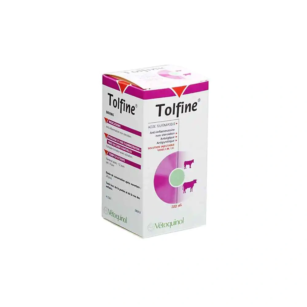 Main Ingredients and Use Tolfenamic acid, an anti-inflammatory agent used in cattle to reduce inflammation and pain associated with musculoskeletal and respiratory infections. Precautions Do not use in cases of ulcerations, digestive bleeding, or hypersensitivity. Avoid in dehydrated, hypovolaemic, or hypotensive animals. Do not inject more than 20 ml per injection site. Avoid concurrent use with nephrotoxic drugs or other NSAIDs within 24 hours. Rinse immediately if contact occurs with skin or eyes. Dosage Intramuscular Injection: 2 mg/kg (1 ml per 20 kg), repeated every 48 hours. Intravenous Injection: 2 mg/kg (1 ml per 20 kg), repeated every 24 hours or followed by intramuscular injection after 24 hours. Do not exceed 5 consecutive injections. Key Ingredients Tolfenamic Acid – A potent NSAID that helps reduce inflammation and pain in cattle. Benefits Effective in treating inflammation in musculoskeletal and respiratory infections. Safe for ruminants when used under veterinary guidance. Available in different vial sizes for convenient dosage administration. Direction for Use Administer as per veterinary prescription. Follow aseptic precautions while injecting.