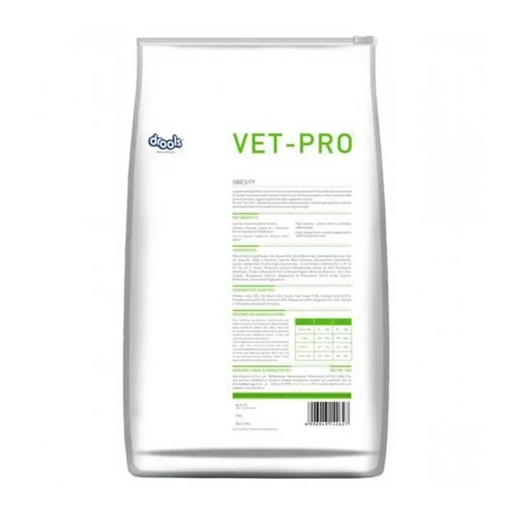 Drools Vet Pro Obesity Food offers dietary benefits that provide optimal nutrition while especially formulated to control obesity and weight management. Low fat and high fibre content results in low calorie content of the food. Even during the period of weight reduction or weight control the dog’s appetite is satiated. It is prescribed for dogs with obesity, constipation, neutered/spayed dogs and fiber responsive colitis.